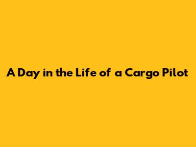 A Day In The Life Of A Cargo Pilot