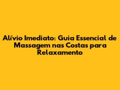 Alívio Imediato: Guia Essencial De Massagem Nas Costas Para Relaxamento