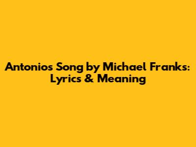Hey guys! Ever heard "Antonio's Song" by the oh-so-smooth Michael Franks? If not, you're in for a treat. And if you have, let's dive deeper into what makes this song so magical. We will explore Antonio's Song lyrics and meaning, to understand why this track remains a timeless classic. Grab your headphones, and let's get started!