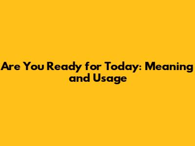 Are You Ready For Today: Meaning And Usage