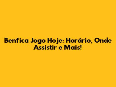 Onde Assistir ao Jogo do Benfica Hoje – Where to Watch the Game