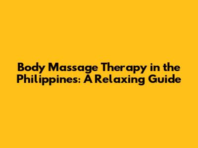 Body Massage Therapy In The Philippines: A Relaxing Guide