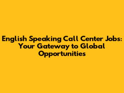 Boost Your Career: English Speaking Call Center Jobs