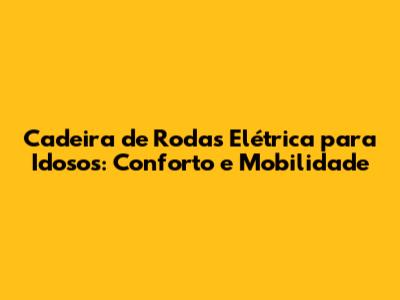 Cadeira De Rodas Elétrica Para Idosos: Conforto E Mobilidade