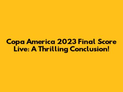 Hey guys, get ready because we're diving deep into the Copa America 2023 final score live updates! This is the moment we've all been waiting for β the culmination of an incredible tournament that has showcased some of the best football talent on the planet. From nail-biting group stage matches to pulsating knockout rounds, the Copa America always delivers drama, passion, and unforgettable moments. This year's final was no exception, promising a spectacle that would etch itself into the annals of football history. Whether you were cheering for your home nation or just a lover of the beautiful game, the stakes were incredibly high, and the tension palpable. We're going to break down the final score, analyze the key players, and discuss how the match unfolded, giving you all the juicy details you need. So, grab your favorite snacks, settle in, and let's relive the excitement of the Copa America 2023 final together! This is more than just a game; it's a battle for continental supremacy, a test of skill, strategy, and sheer determination. The energy leading up to the final was electric, with fans from both competing nations creating an atmosphere that was simply breathtaking. The anticipation was almost unbearable, knowing that only one team could lift the coveted trophy. We saw incredible performances throughout the tournament, with rising stars making their mark and seasoned veterans demonstrating their enduring class. The journey to the final was fraught with challenges, and both teams had to overcome significant hurdles to reach this decisive stage. This match was not just about the score; it was about the narrative, the history, and the dreams that were on the line. Get ready to explore every crucial moment, every game-changing goal, and every heroic save that defined this epic showdown.