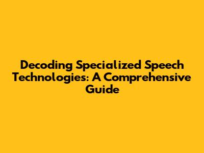 Decoding Specialized Speech Technologies: A Comprehensive Guide