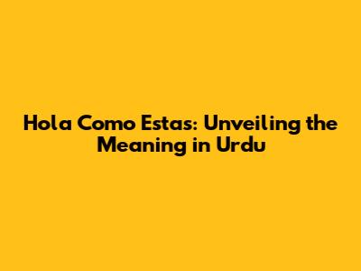 Hola Como Estas: Meaning In Urdu