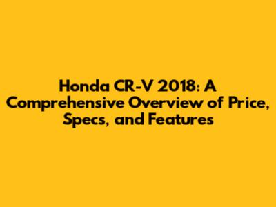 Honda CR-V 2018: Price, Specs, And Features