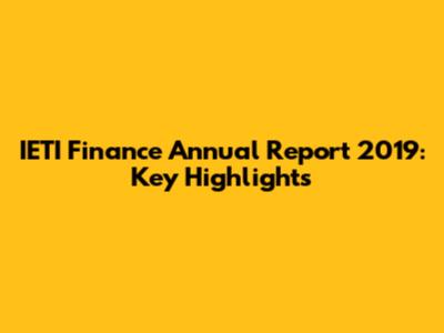 IETI Finance: Annual Report 2019 - Key Highlights