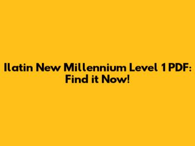 Ilatin New Millennium Level 1 PDF: Find It Now!