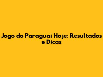 Jogo Do Paraguai Hoje: Resultados E Dicas