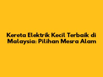 Memilih kereta elektrik kecil terbaik di Malaysia adalah langkah penting ke arah kehidupan yang lebih lestari dan mesra alam. Dengan peningkatan kesedaran tentang isu alam sekitar dan manfaat ekonomi jangka panjang, kereta elektrik kecil semakin mendapat perhatian. Artikel ini akan membincangkan pelbagai pilihan kereta elektrik kecil yang ada di Malaysia, kelebihan dan kekurangan masing-masing, serta faktor-faktor penting yang perlu dipertimbangkan sebelum membuat keputusan pembelian.