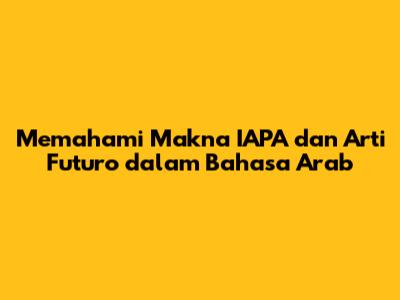 Memahami 'IAPA' Dan 'Arti Futuro' Dalam Bahasa Arab
