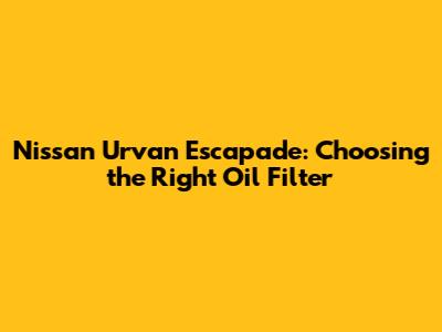 Key Considerations When Choosing an Oil Filter for Your Urvan Escapade