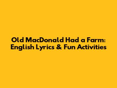 Old MacDonald Had A Farm: English Lyrics & Fun Activities