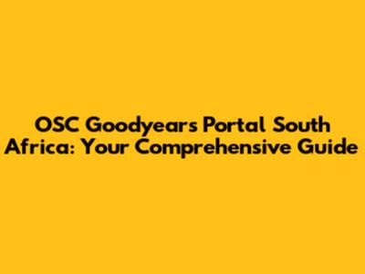OSC Goodyear's Portal South Africa: Everything You Need To Know