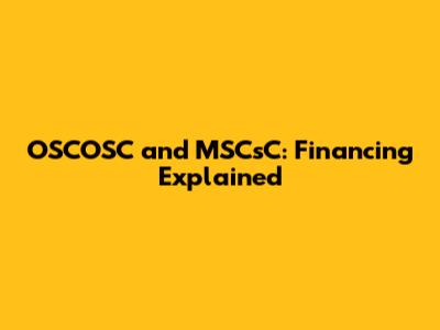 OSCOSC And MSCsC: Financing Explained