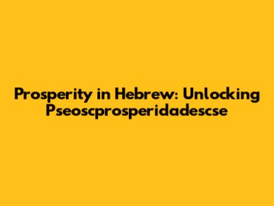 Prosperity In Hebrew: Unlocking Pseoscprosperidadescse