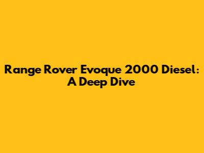 Range Rover Evoque 2000 Diesel: A Deep Dive