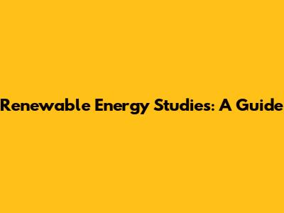 Renewable Energy Studies: A Guide