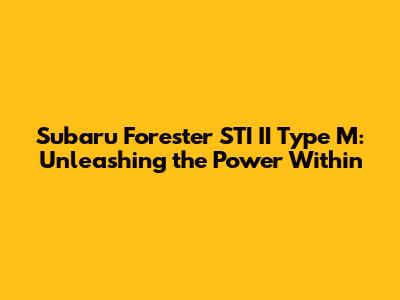 Hey guys! Let's dive into the exhilarating world of the Subaru Forester STI II Type M. This isn't your average grocery-getter; it's a wolf in sheep's clothing, blending the practicality of an SUV with the heart-pounding performance of a true STI. We're going to explore everything that makes this car special, focusing on its horsepower, performance capabilities, and what sets it apart from the standard Forester. Buckle up, because this is going to be a fun ride!