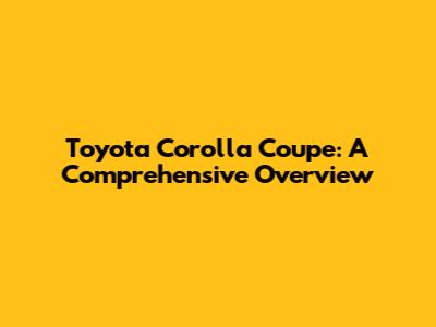 Toyota Corolla Coupe: History, Models, And Availability