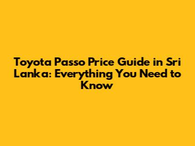 Toyota Passo Price Guide In Sri Lanka: What You Need To Know