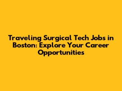 Embarking on travel surgical tech jobs in Boston represents a fantastic opportunity to advance your career while immersing yourself in one of America's most dynamic and historic cities. We've explored the immense advantages of working in Boston's world-renowned medical facilities, the crucial role and diverse skills required of a traveling surgical technologist, and the strategic steps to finding and securing these sought-after positions. From understanding the competitive compensation and benefits packages tailored for travel professionals to embracing the unique lifestyle Boston offers, it's clear that this path is paved with professional growth and exciting personal experiences. Boston provides an unparalleled environment for surgical techs to expand their expertise, work with cutting-edge technology, and contribute to life-saving care. The combination of challenging, rewarding work and the chance to explore a city rich in culture, history, and culinary delights makes it an exceptionally attractive destination. If you're ready to take your career to the next level and experience the best of both worlds β professional fulfillment and urban adventure β then Boston should definitely be at the top of your list. Start connecting with reputable healthcare staffing agencies, polish your resume, and prepare yourself for the incredible opportunities that await. Your next great adventure as a traveling surgical tech is calling β answer it in Boston!