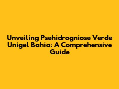 Unveiling Psehidrogniose Verde Unigel Bahia: A Comprehensive Guide